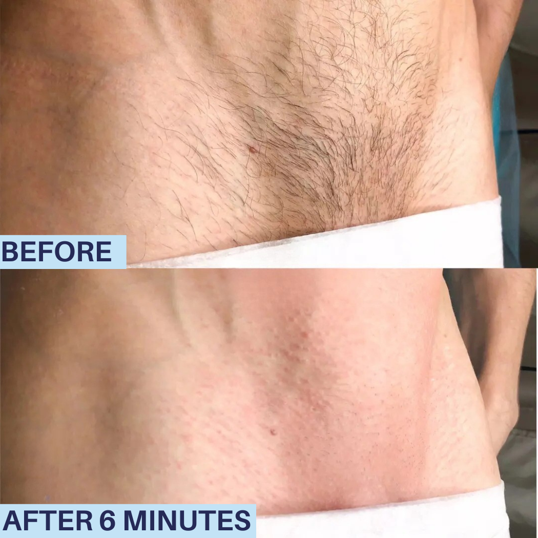 Most guys stay smooth for up to a week and a half, depending on your hair type. When it does grow back, it’s softer—not prickly like after shaving.
